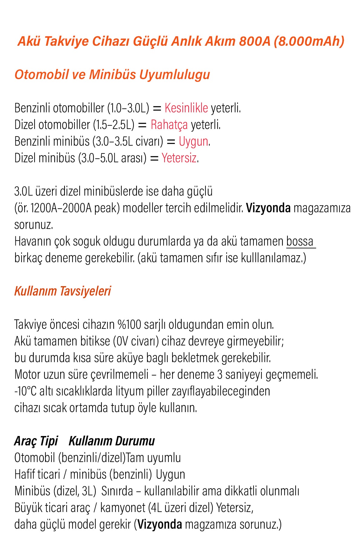 Akü Takviye Cihazı Güçlü Anlık Akım 800A (8.000mAh)