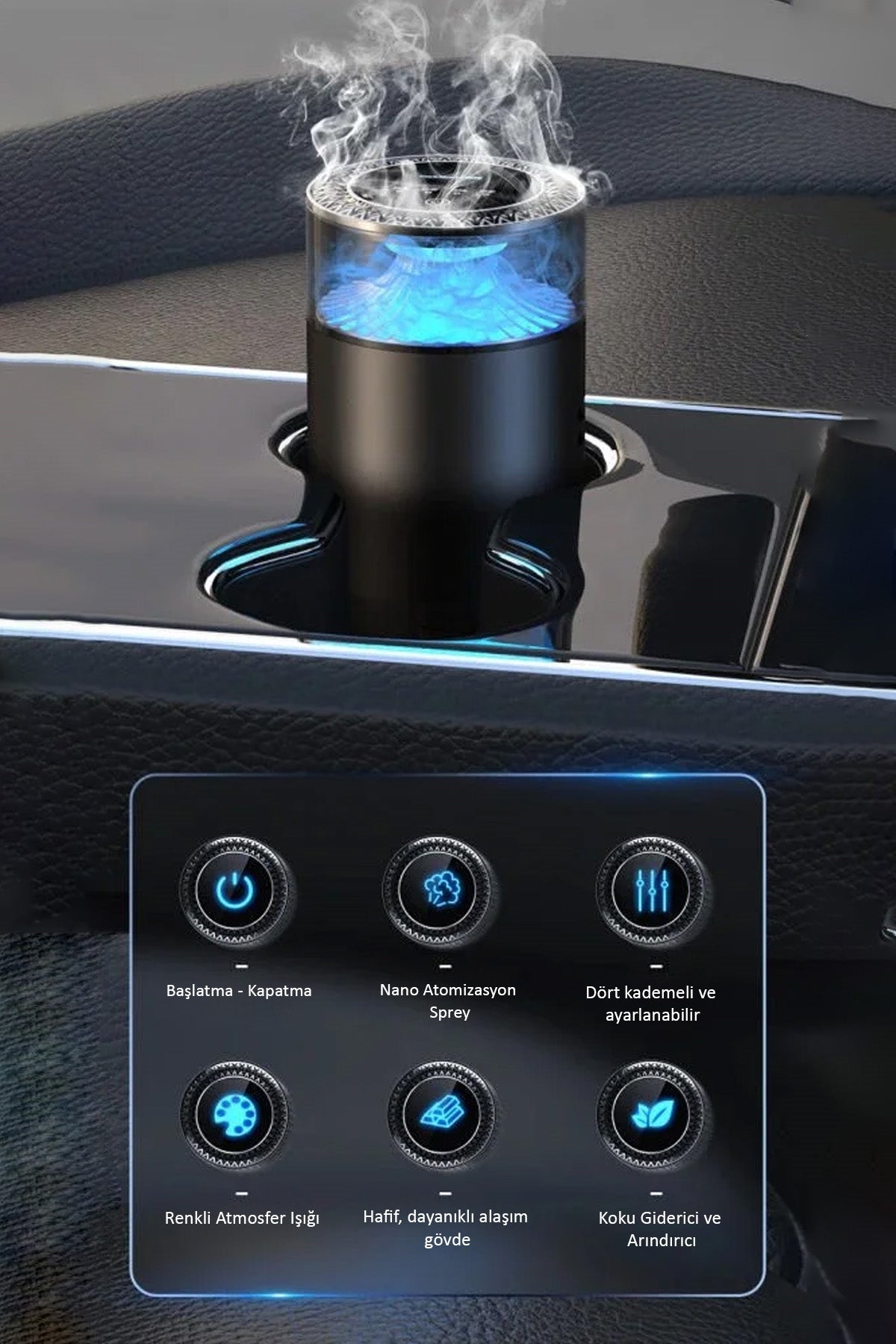 - Araç ve Ev Kokulu Nemlendirici Cihazı Ledli Koku Difüzörü Oda Spreyi Araba İç Koku Giderici