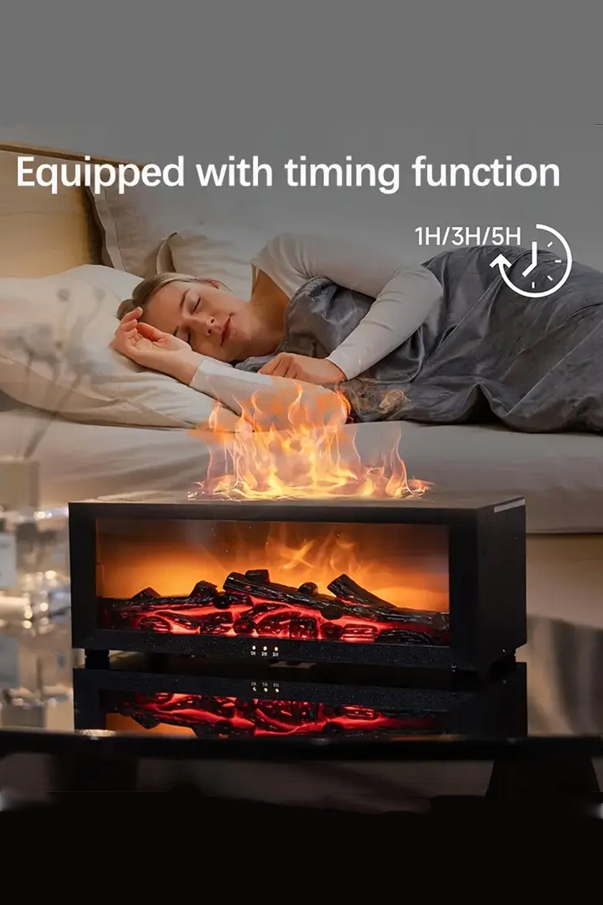 Şömine Görünümlü Alev Efektli Hava Nemlendirici 3D Alev Aroma Difüzörü Aroma Terapi Buhar Makinesi