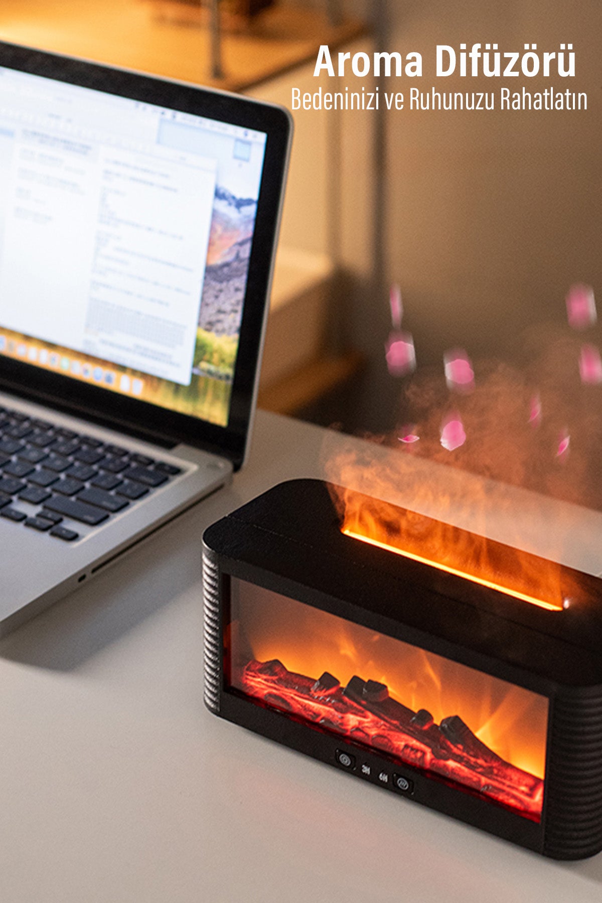 - Ultrasonik Alev Efektli Şömine Görünümlü Hava Nemlendirici 3D Alev Aroma Difüzörü Buhar Makinesi
