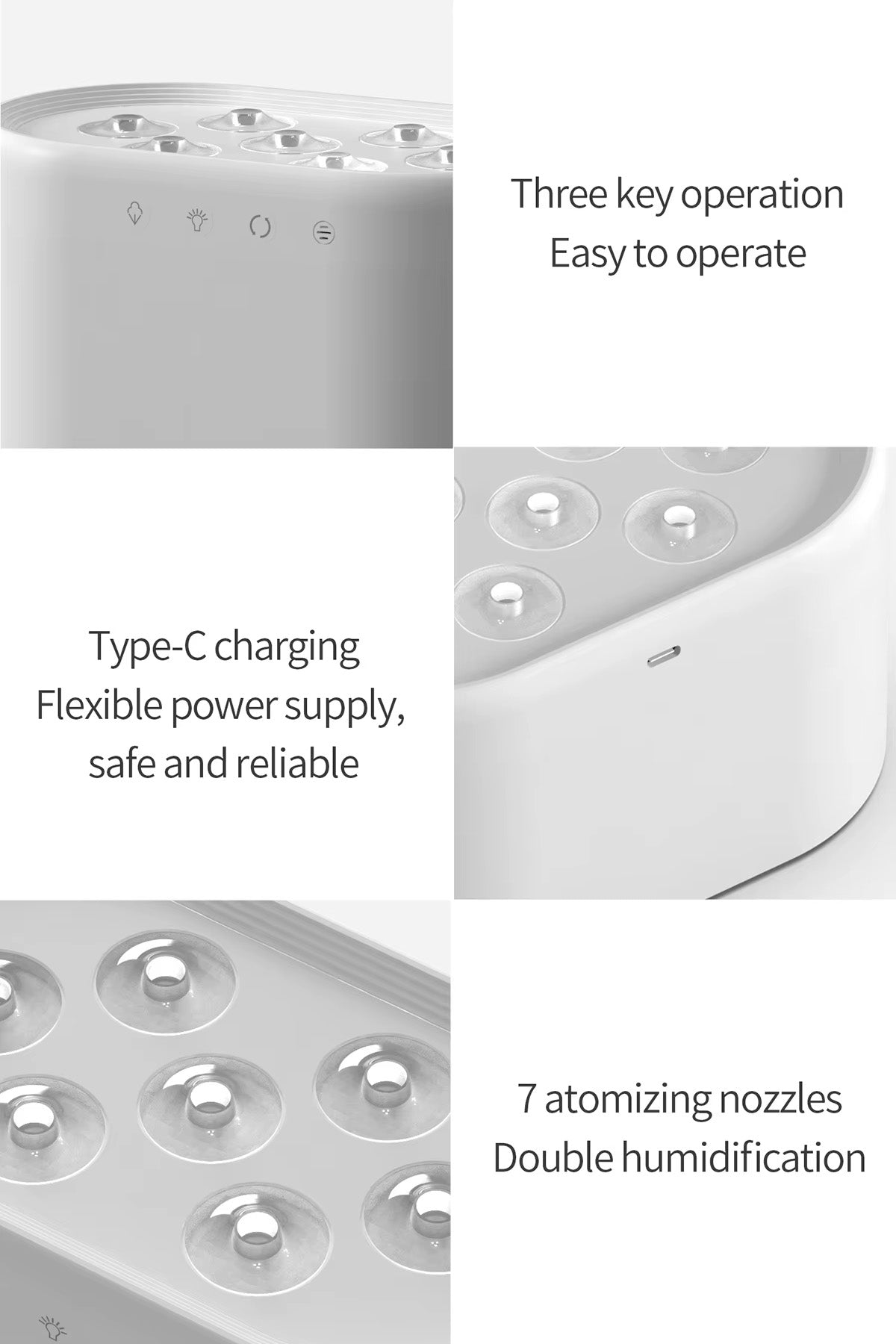 - Basit ve Pratik Tasarım: Kompakt ve masaüstü dostu olmak için tasarlanan bu difüzör nemlendirici minimum alan kaplar ve yatak odanıza, oturma odanıza veya ofisinize yerleştirmeyi kolaylaştırır.