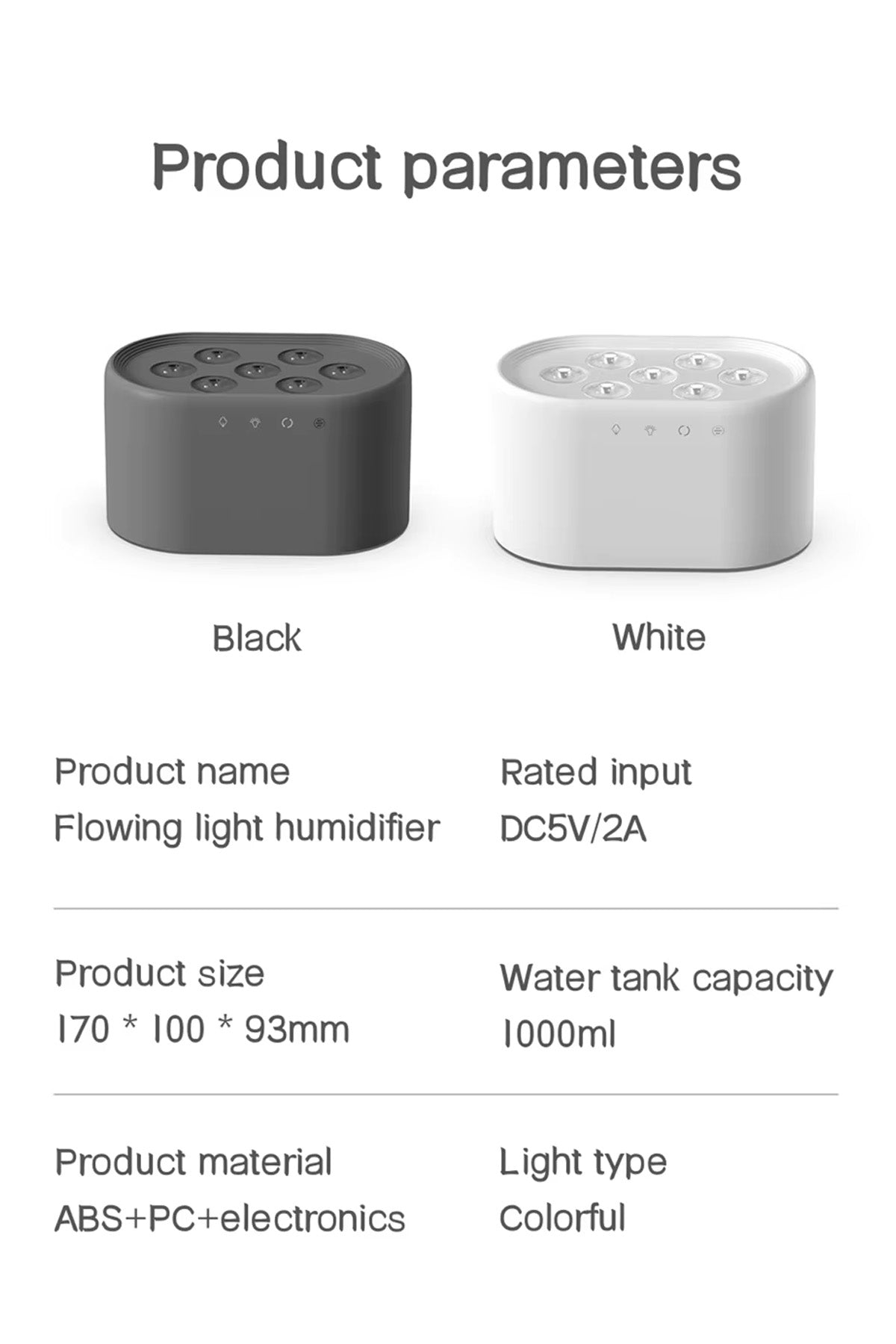 Ultrasonik Hava Nemlendirici 7 Renk Işıklı Aroma Difüzörü Dinamik Buhar Makinesi 1000 ml
